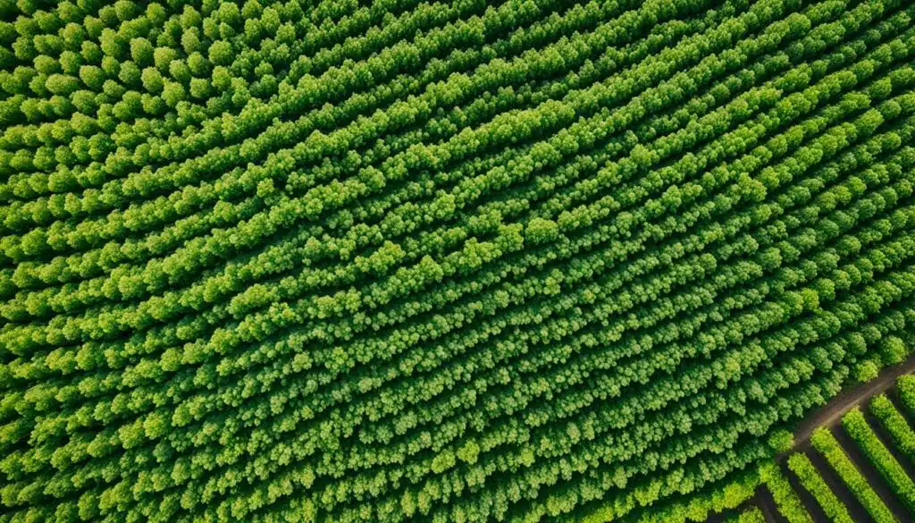 The use of drones is growing fast. Experts say their market will go from $1.2 billion in 2019 to $4.8 billion by 2024. Drones are a big part of making farming more precise. They can boost crop yields by up to 5%. Amazingly, with drone seeders, it’s possible to plant 400,000 trees daily. This shows the huge potential of these technologies.